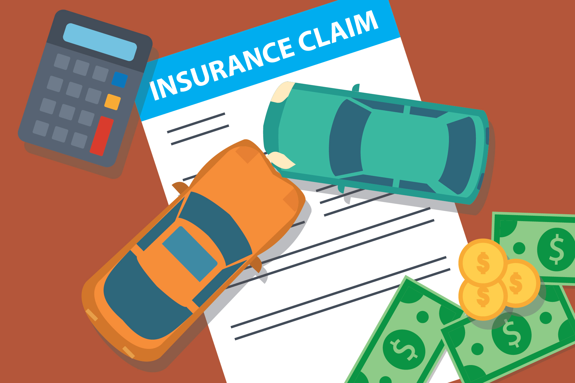 Insurance claim form with two car collision concept with calculator and cash and coins concept for payment of a car insurance claim