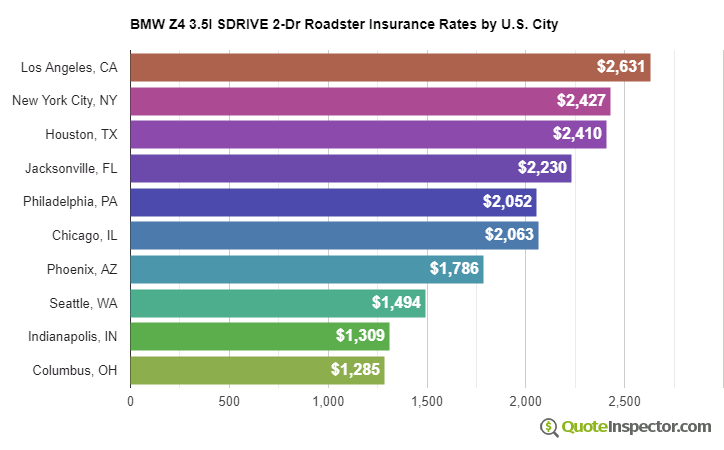 For an average driver, BMW Z4 3.5I SDRIVE 2-Dr Roadster insurance prices go from the cheapest price of $370 for just liability coverage to a high rate of $3,316 for a driver required to buy high-risk insurance.