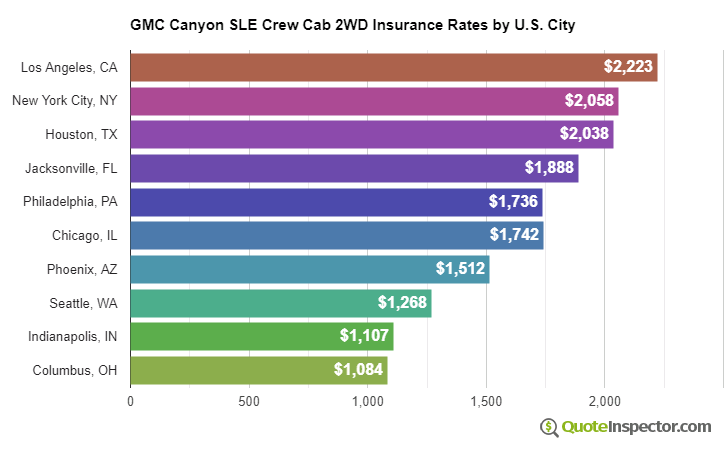 Car insurance rates for a GMC Canyon SLE Crew Cab 2WD also range considerably based on your risk profile, the model year, and liability limits and deductibles.