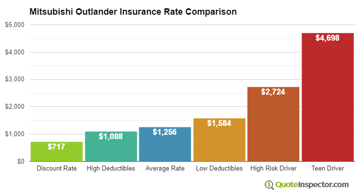 For an average driver, insurance rates for a Mitsubishi Outlander range from the cheapest price of $438 for a discount liability-only rate to a high of $2,452 for high-risk insurance.